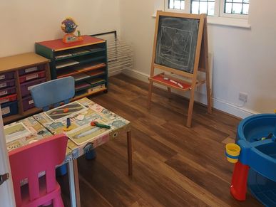 We encourage children to explore the outdoors in a safe environment therefore we have a separate enclosed garden that has a vegetable garden, water tray, play house, perspex for mark making, water/ball run, sandpit, balancing beams and a aeroplane see-saw. The garden is always adapted to children's age/ interest therefore we are constantly seeking new equipment and will also bring resources out from inside.